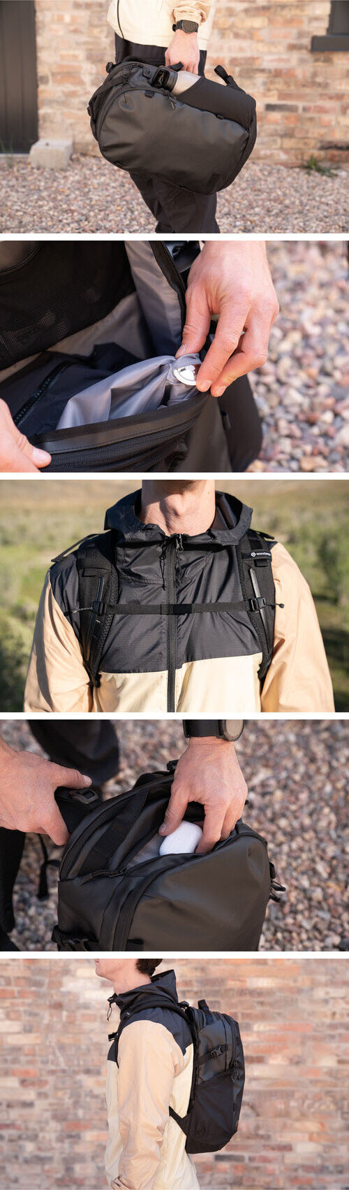 WANDRD NIMBUS 18L - это идеально продуманное организационное решение для современного пользователя. Верхний карман быстрого доступа обеспечивает мгновенное извлечение часто используемых мелочей, а скрытый карман для AirTag позволяет отслеживать местоположение рюкзака через приложение. Специальное защищенное отделение надежно вмещает ноутбуки размером до 16-дюймовой модели MacBook Pro (примерно 35 см), гарантируя сохранность вашего основного оборудования, а дополнительный сетчатый карман на спинке создает удобное пространство для хранения документов или планшета.